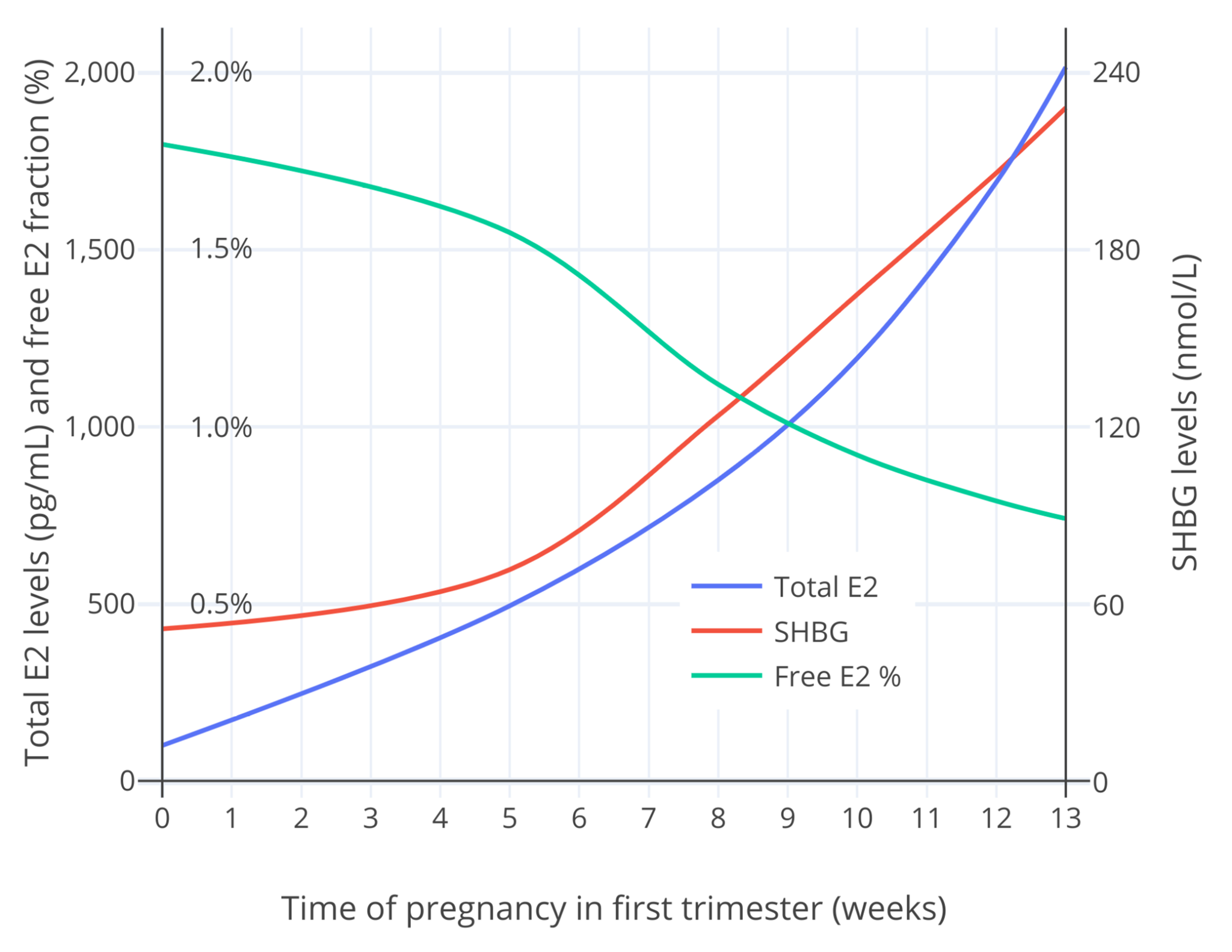 If SHBG is nonetheless explored however, the research indicates that the role of SHBG in restricting free estradiol, and hence presumably the biological activity of estradiol, is only so considerable. Within physiological non-pregnancy ranges for estradiol (e.g., <200 pg/mL), changes in SHBG levels and free estradiol fractions due to endogenous or non-oral estradiol are minimal. Very high estradiol levels have greater influence on SHBG production than normal physiological levels however. During pregnancy, with the massive increases in estradiol and resultant 5- to 10-fold maximal elevation in SHBG levels, the free estradiol percentage may be decreased to around 60% of that of non-pregnancy. But actual free estradiol levels are nonetheless profoundly increased in pregnancy. Moreover, increases in SHBG levels and decreases in free estradiol fraction earlier in pregnancy are lower than in late pregnancy. Even with among the highest estradiol levels that would normally be encountered with non-oral estradiol therapy, the decreases in the free estradiol fraction due to SHBG are likely to be modest. The impact of such a reduction could easily be negated by a slightly greater estradiol dose.