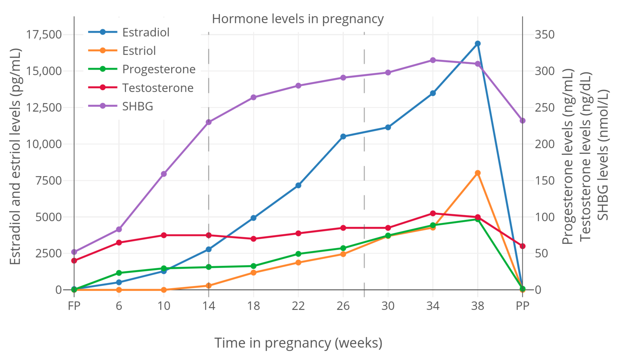 | Figure 2: Total sex hormone and SHBG levels during pregnancy in women (Kerlan et al., 1994). |